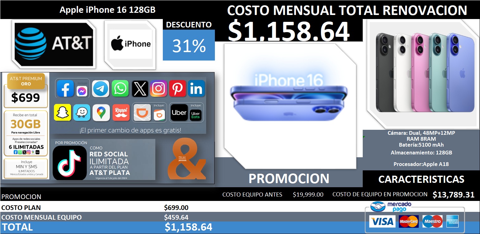 SOLO ES UN CANJE (TRADE IN) compatible con Planes AT&T.