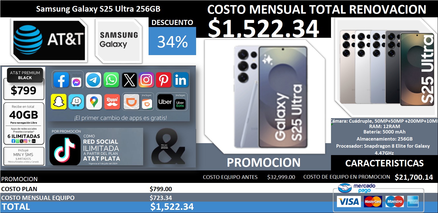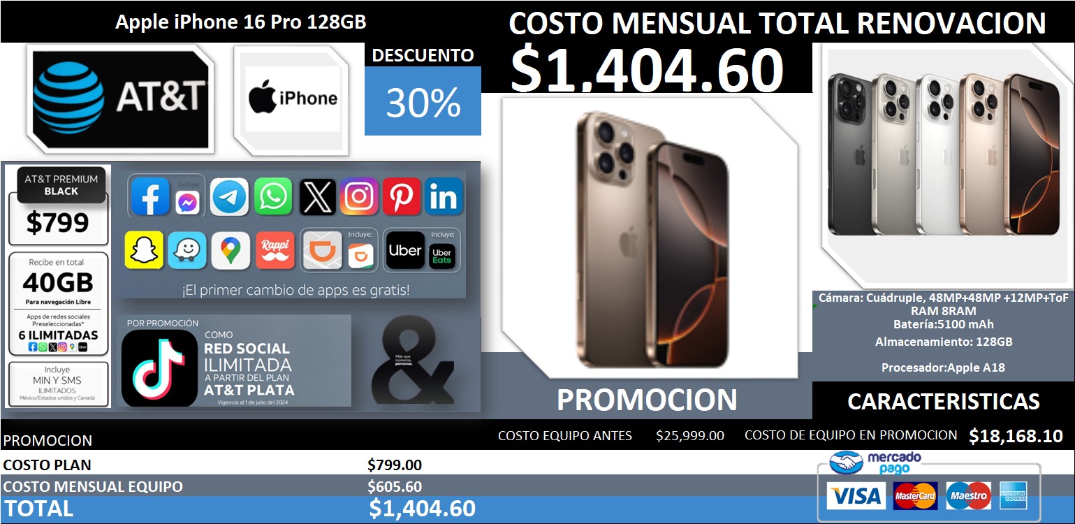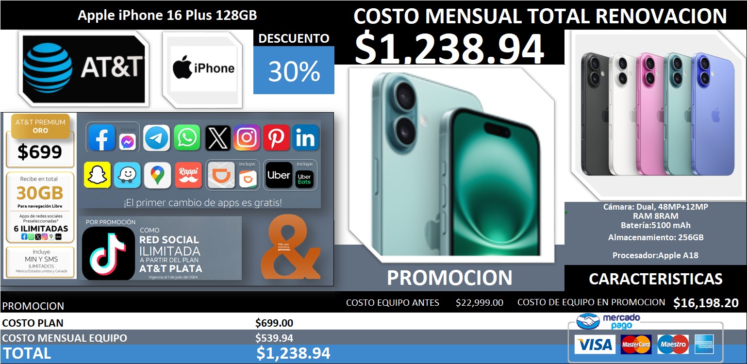SOLO ES UN CANJE (TRADE IN) compatible con Planes AT&T.